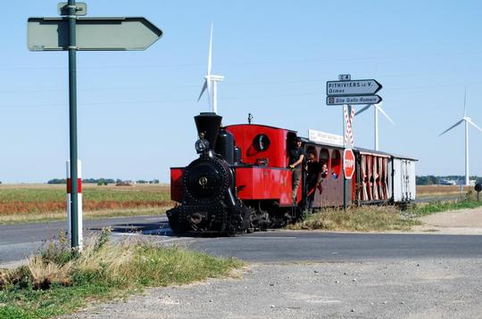 The roadside tramway nature of this former sugar beet hauling line is clear in this September 2019 photo as the short train approaches the cross roads near Pithiviers.