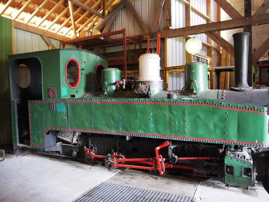 Still with its number and identity from the Chemin de Fer des Combes at Le Creusot, The Feldbahn loco stands stored at Rille.