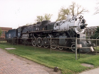 Locomotive is at E 5th St and Broadway, next to BNSF tracks. Rotary Park is on the west side of town...