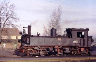 This was originally Sächsenische Staatsbahnen 154, at Kirchberg (NOT kkStEB) that, in 1925 became DRG No. 99 564, keeping that identity through to 1949, then with DR for whom it later became No. 99 1564 and, with computerisation 99 1564-6. When DB took over in 1992 it was again re-numbered, on this occasion to 099 705-6 until the end of 1998, and was later stored the following year at Freital-Potchappel, before moving to other narrow gauge systems in the locality