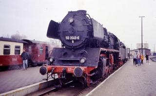 Ex DR rebuilt class No. 50.(3)545(50.1385), a 2-10-0 at Tubingen during the Steam Festival there at Easter 1998