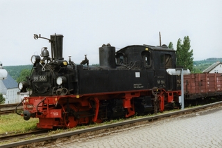 This locomotive was originally Sächsische Staatsbahn No. 156 at Jöhstadt that, in 1925 became DRG No. 99 566 through to 1949, then for DR who later re-numbered it as 99 1566, effectively working through to 1988. In 1992 it went, via Chemnitz Hilbersdorf, to the DDM at Neuenmarkt-Wirsberg but was back in Hilbersdorf by 2003.
