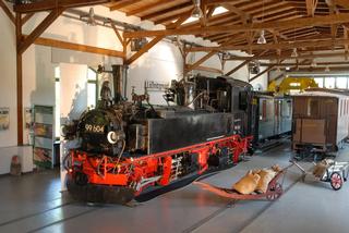 Loco no.99.604 is of interest as it is one of the only three remaining Saxon Railway 0-4-4-0T Mayers which were not rebuilt by the DR in the 1970s. As a result they were virtually new engines. As such it was never given a DR computerised number. The 99.1604 number is therefore incorrect. Its Saxon Railway number was 194.