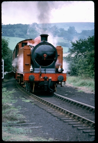 On retirement No31 was preserved on the North Yorkshire Moors Railway and restored to working order in a rather, er, striking livery of orange with bright green wheels. This was supposed to be based on a 2-6-0 of Ferrocarril de Guayaquil a Quito, in Ecuador. Inevitably, it became known as 'the Clockwork Orange'! In the photo, Meteor digs into the climb from Grosmont towards Goathland near Esk Valley.