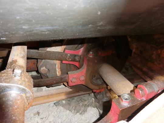 Next we now see the valve rod of one of the sets of valve gear. with some linkage, possibly for the brakes.