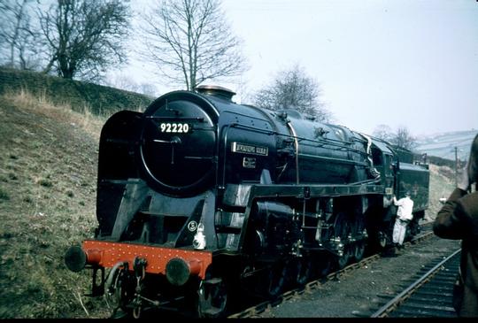 92220 photographed in 1974 at Oxenhope on the Keighly & Worth Valley Railway where the loco was visiting.
