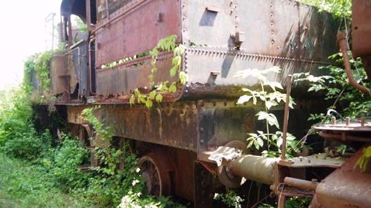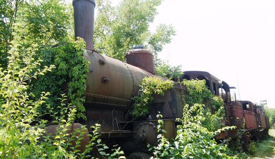 Showing the effects of being out of use for sixty years, 175.817 disappearing into the Strasshof weeds on 23 July 2019