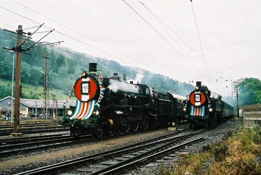 Südbahn 4-6-0 No.109.13 (left) and 4-6-2T No.629.01 (right) during Südbahn festivities at Mürzzuschlag. Austria 20 June 2004