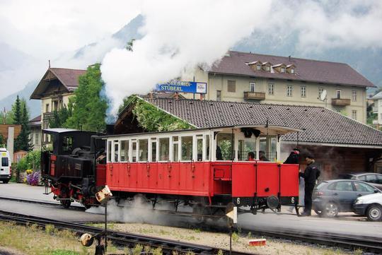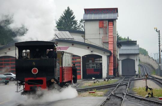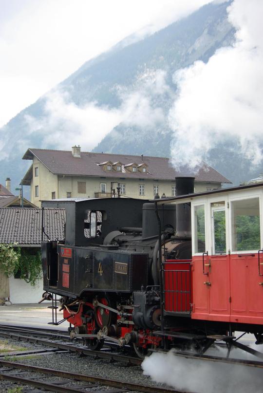 On September 1st 2013, No 4 marshals it's train at Jenbach. Note the rack section that begins behind the carriage, on the right of the photo.