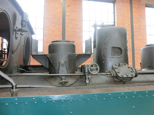 Boiler mountings - the rear sandbox nearest the cab, although the pipe top deliver the sand is missing, and the steam dome on the right with the safety valves.