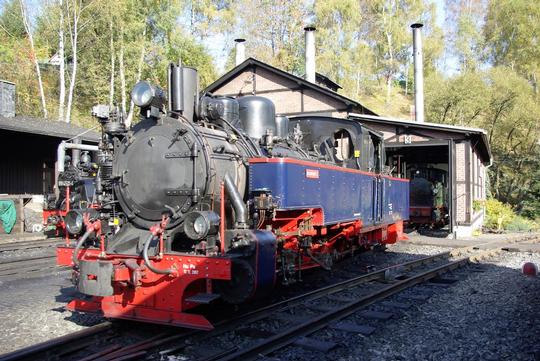 'Aquarius C' whilst working on the Preßnitzbahn, outside Jöhstadt depot, 4 October 2011