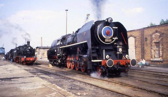 The magnificent Skoda built 4-8-2 was pictured at Dresden Altstadt Open Day, 1 May 1993.