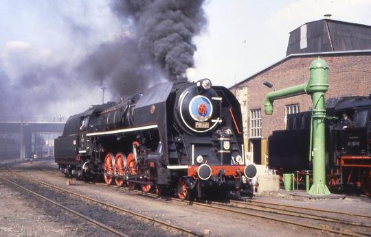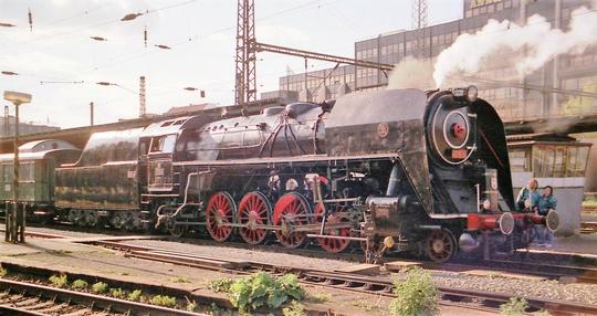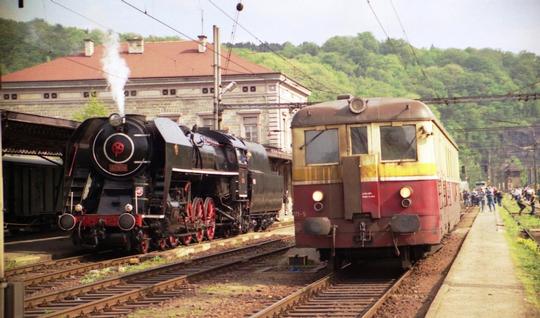 CD 2-8-2 No.475 179 taking over from No.03 001 and backing down to the special train at Decín, 2 May 1998.