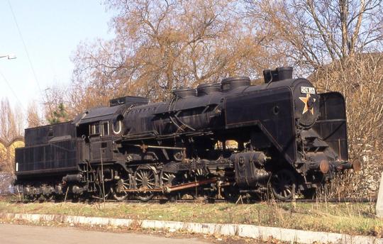 MÁV 4-8-0 No.424.053 outside Istvantelek Workshops, Budapest on 7 April 1996