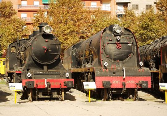 On the left is 240-2074 at the museum roundhouse at Vilanova i la Geltrú, Spain on 13 November 2008