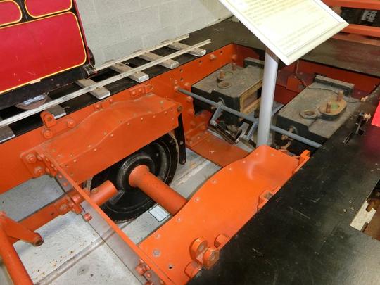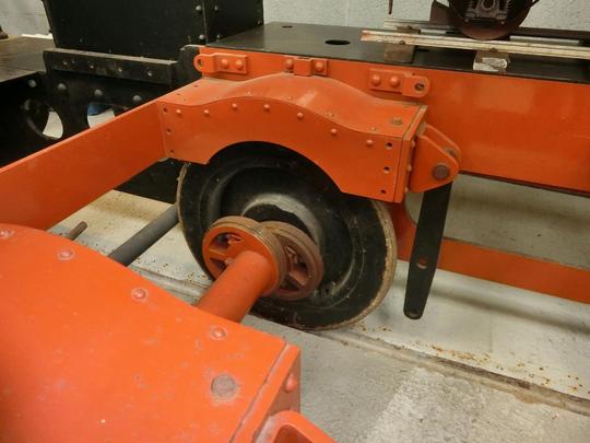 'Lady Madcap's chassis showing the trailing axle with the eccentrics for the left hand cylinder attached.