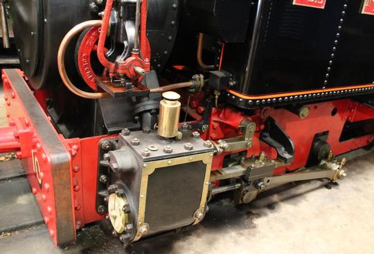 The cylinders and rods. Note that it is an outside framed loco.