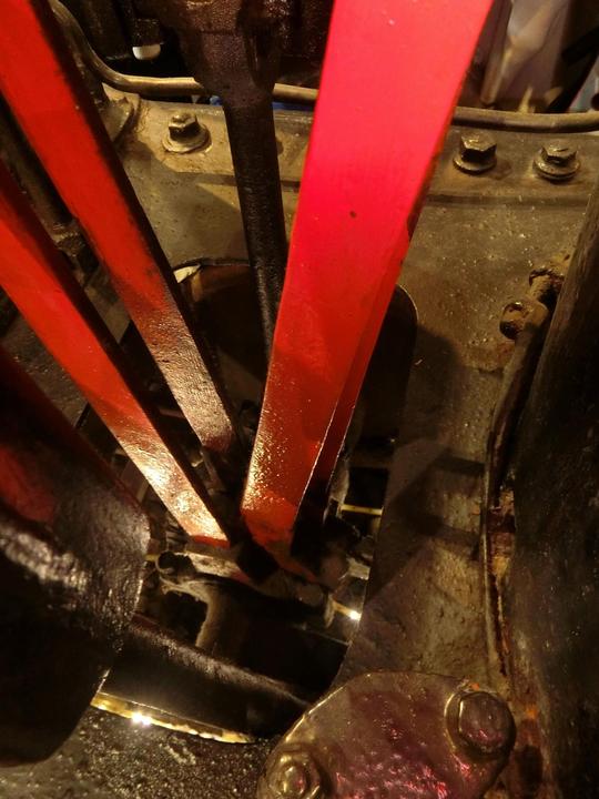 Sandwiched between the throws of the crank axle are the eccentrics and these are the eccentric rods for the two cylinders.
