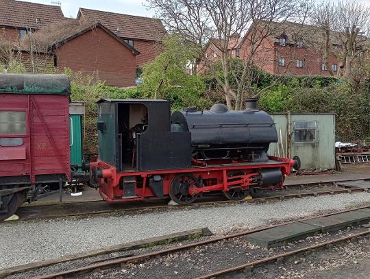 Bagnall built 0-4-0ST Works No. 2565 in the yard at the North Norfolk Railway's Sheringham station waiting to be moved to Weybourne for overhaul. 15th April 2023.