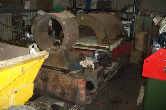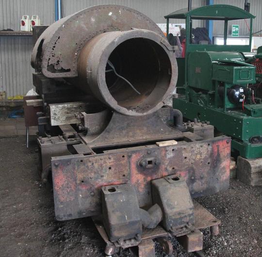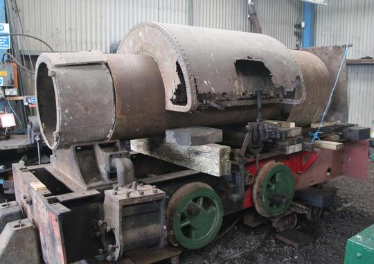 The heavily corroded saddle tank is obvious in this photo, as is the new boiler barrel that is under construction. It looks like it will have one of Bagnall's circular marine type fireboxes.