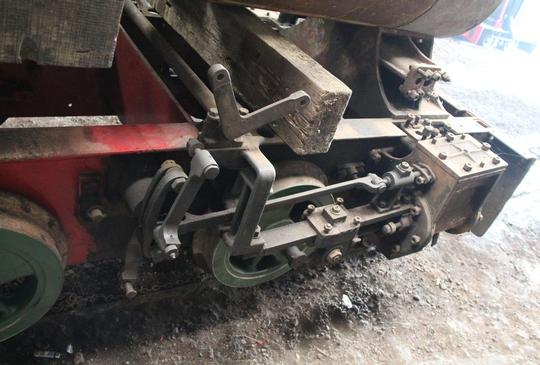 Right hand side cylinder and incomplete Bagnall - Price valve gear. Like the circular firebox, a typical Bagnall feature on their smaller locos.