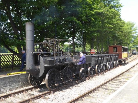The replica of 'Locomotion' at Wolsingham on 11th June 2025 getting ready to work on the Weardale Railway in preparation for steaming at events to celebrate 200 years of the Stockton & Darlington Railway