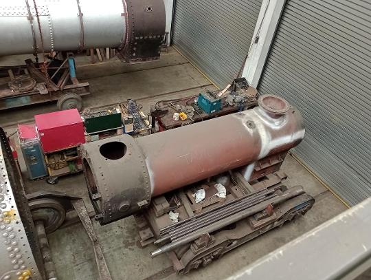 The boiler from 'Talyllyn' in the workshop at the Mid Hants Railway on April 29th 2023.