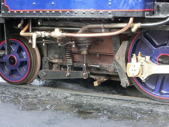 At Tywyn on 19th September 2025. The right hand side injector and the brake operating arrangement carefully adapted to fit into the available space.