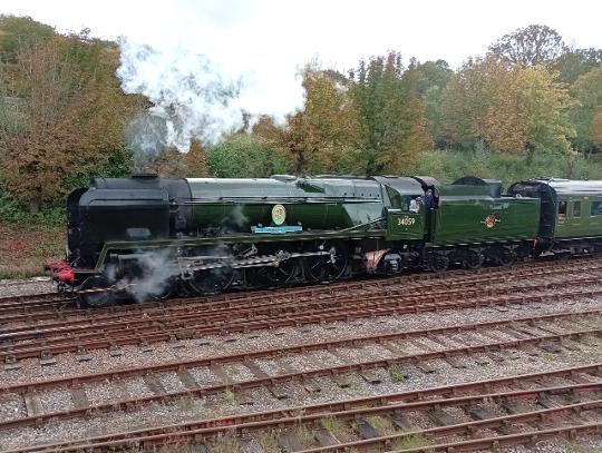 After an overhaul, the rebuilt Battle of Britain class, 34059 'Sir Archibald Sinclair' takes to the rails once again on the Bluebell railway in August 2024.