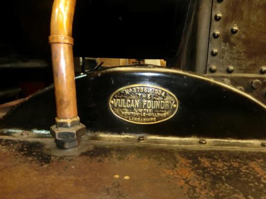 The builder's plate on the leading splasher on 28th July 2024. Vulcan Foundry was established in the very early days of locomotive manufacture and built many locomotives for the home market and export, including diesel and electric locomotives. Today, the works has been demolished and replaced with a housing estate.