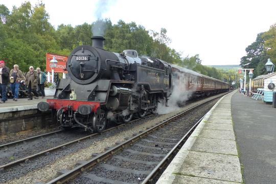 80136 blasts off from Grosmont with the 15.56 departure for Pickering on September 29th 2017.