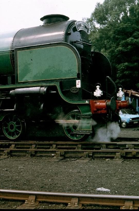 No.850 'Lord Nelson' outside Carnforth depot on 27 May 1990.