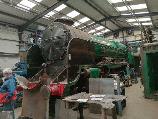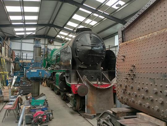 No. 850 'Lord Nelson' in the boiler shop at Ropley photographed during the Mid Hants Railway Spring Steam Gala on the 27th April 2024.