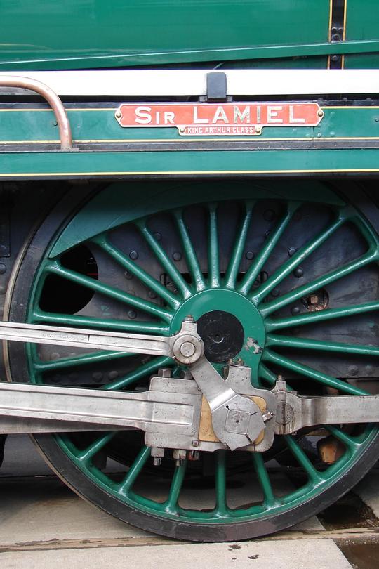Driving wheel and name plate. Notice the class name - 'King Arthur Class' - named after characters in the Knights of the Round Table.