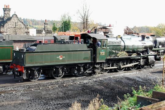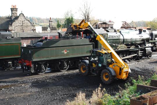 7812 gets coaled at Bridgenorth in October 2017. The Dutch gable in the background is part of the station building.
