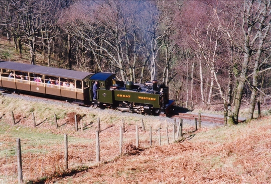 At Devils Bridge, No.8 'Llywelyn' in a revised Cambrian Railways livery on 26 August 1990. As a loco built by the Great Western Railway, it would have never worked the line under Cambrian Railways ownership.