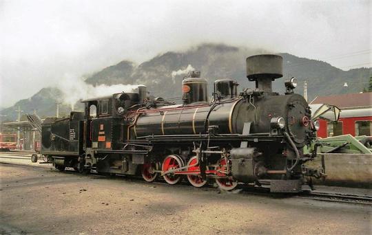 Ex JŽ 0-8-2 No.4 (83-076) working at a wet Jenbach terminus, 25 September 2002.