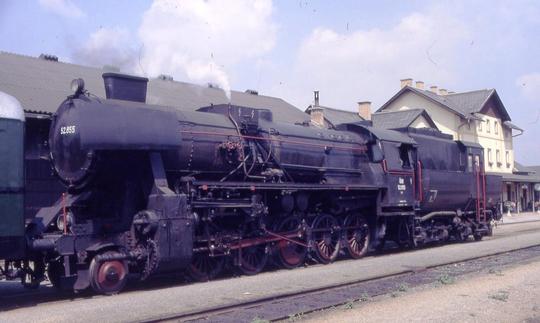 52 855 with a special train at Bf Friedberg, Styria 22 August 1987