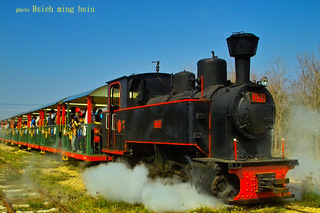 Steam locomotive has rebuilt to oil-burned by TSC, hauling tourist train on every weekend twice a day at Wu-Shu-Lin Sugar Factory.