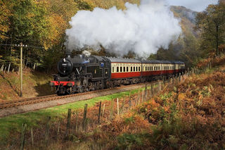 42085 is a development by Ivatt of the Stanier 2-6-4T. These class 4 tank locos were popular for suburban work and use on empty stock working at major termini. First preserved in a spurious caledonian Raiway blue livery (see the album photo for this) it looks much better in correct BR paintwork - especially with the 'Plum & Spilt Milk' coaching stock in the photo)Ideal for preserved operation, its a pity only two survive.